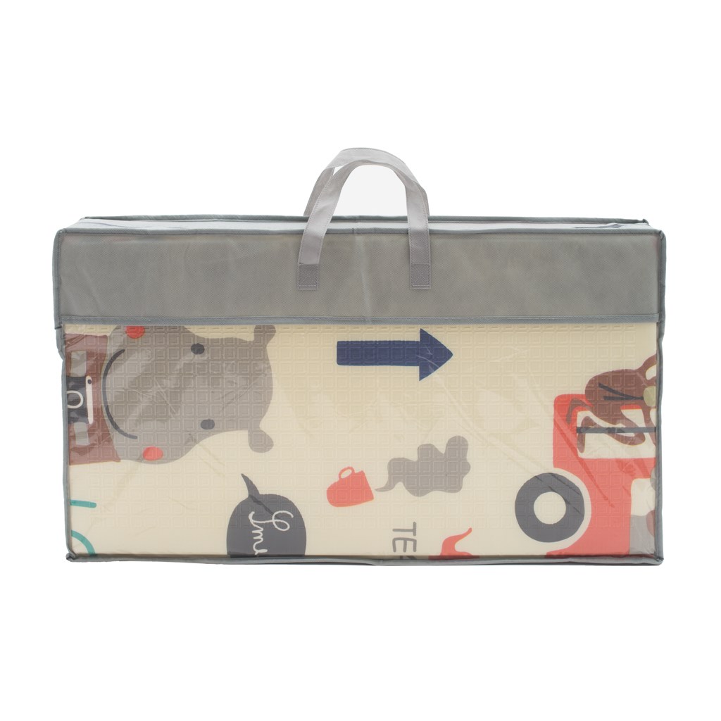 Multifunkčná penová hracia podložka PlayTo má všestranné využitie pre celú rodinu. Vďaka obojstrannému motívu ju môžete využiť aj ako podložku na domáce cvičenie, karimatku do stanu, skladaciu podložku na kúpalisko, záhradu, piknik v prírode, alebo plážovú podložku. Jej prednosti ocenia tiež škôlky, školy, predškolské zariadenia a detské centrá ako podpornú pomôcku pre bezpečné hranie a rôzne pohybové aktivity. Mäkký a na dotyk veľmi príjemný materiál, z ktorého je podložka vyrobená zaisťuje vynikajúcu zvukovú a tepelnú izoláciu od studenej podlahy, chráni pred roztočmi v koberci, alebo spálením sa od koberca. Podložka má naozaj úctyhodné rozmery 200x150 cm, a po zložení má rozmery len 70x40x10 cm. Ľahko ju zbalíte do praktickej tašky, v ktorej je podložka dodávaná. Je certifikovaná podľa normy EN71 ako hračka a tým spĺňa prísnejšie požiadavky než niektoré konkurenčné podložky čo sa týka bezpečnosti, materiálového a chemického zloženia.