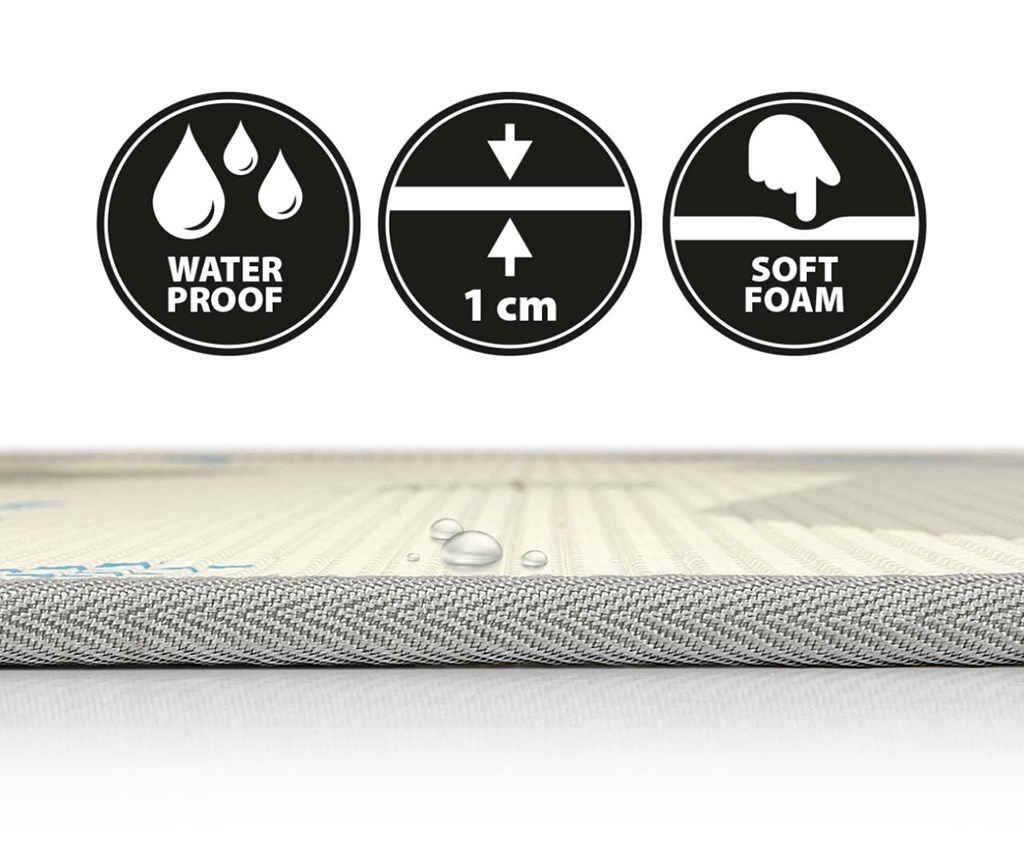Kreatívne a farebné vzory podložky povzbudzujú aktivitu, najmä v raných fázach vývoja. Plochý povrch penovej podložky umožňuje vášmu dieťaťu modelovať stabilný trup, prirodzene a voľne otáčať hlavou, precvičovať rotácie, opierať sa, správne zaťažovať nohy a stabilne a bezpečne sedieť. Rolovacia penová podložka KINDER je bezpečným a pohodlným miestom na hranie. Produkt poskytuje vynikajúcu izoláciu od studených podláh a vďaka nepremokavému povrchu sa ľahko čistí a je ideálnym doplnkom do každej izby. Jeho vysoká flexibilita zaisťuje vynikajúce tlmenie nárazov v prípade pádu. Je možné ho použiť aj vonku na hladkom povrchu. Naša podložka je tiež ideálna na cesty.VLASTNOSTI PRODUKTU: