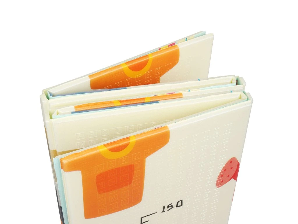 Podložka je vyrobená z peny XPE najvyššej kvality bez zápachu . Vyznačuje sa mimoriadnou životnosťou a odolnosťou voči opotrebovaniu , vďaka čomu bude slúžiť dlhú dobu bez nutnosti výmeny . Materiál XPE je hrubý a pružný , čo poskytuje vynikajúce tlmenie nárazov v prípade pádu, ako aj izoláciu od studenej podlahy. Pena XPE je netoxická, vodeodolná a ľahko sa čistí a jej farby zostávajú intenzívne. Podložku je možné použiť doma aj vonku : na balkóne, v záhrade alebo na cestách.