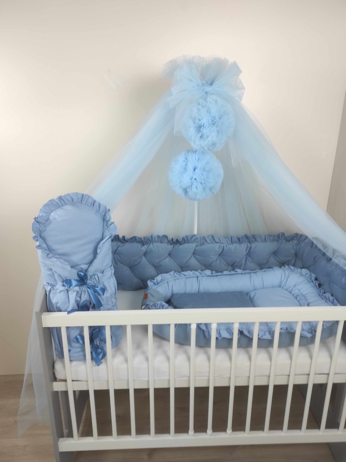 Krásna sada pre bábätko obsahuje:zavinovačku,mantinel ,hniezdočko ,stojan na baldachýn a baldachýn POM.