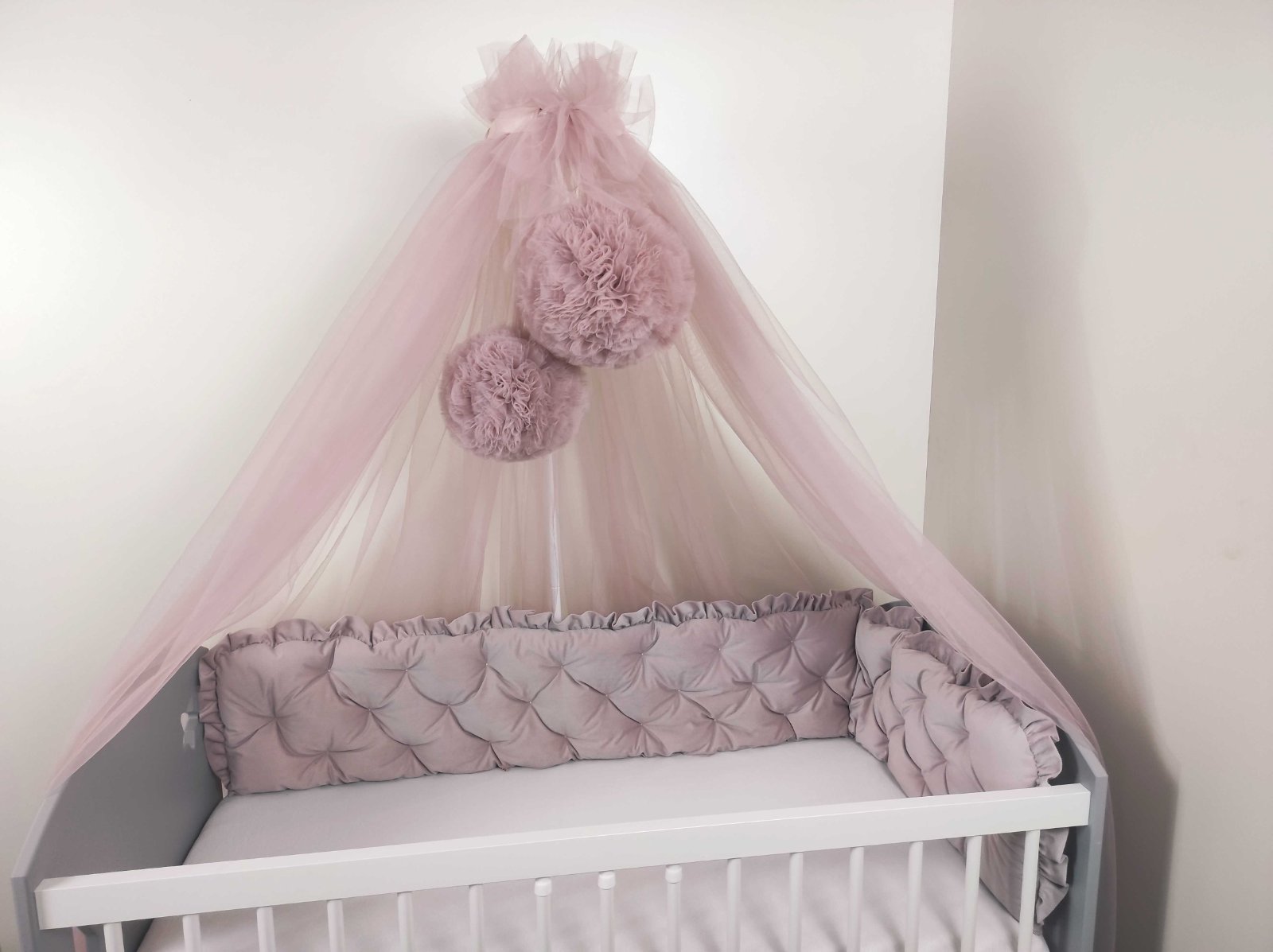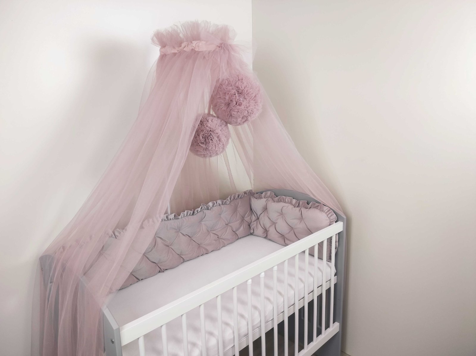 -rozprávkový baldachýn, vďaka ktorému vytvoríte čarovný priestor pre svoje bábätko.Baldachýn do detskej postieľky vyrobený z jemného tylu. Zdobený dvoma pompom brmbolcami, ktorý mu dodávajú výnimočný vzhľad.